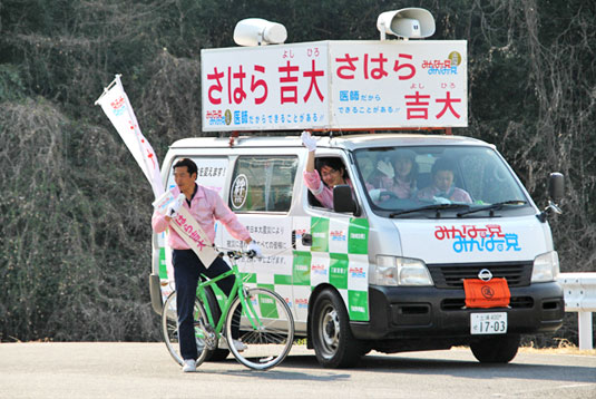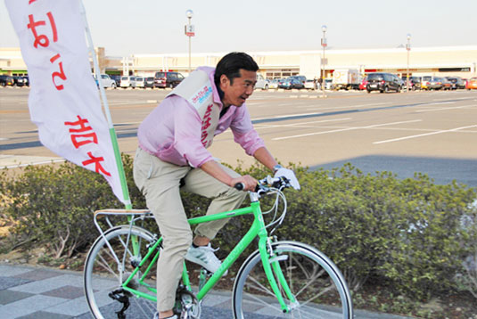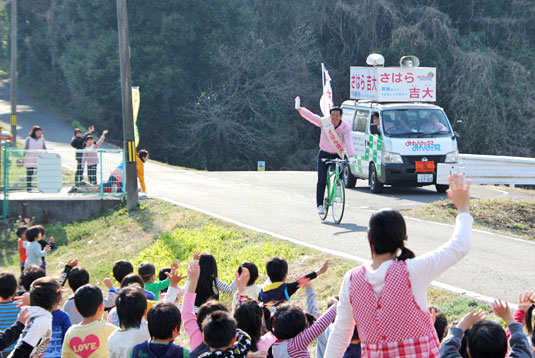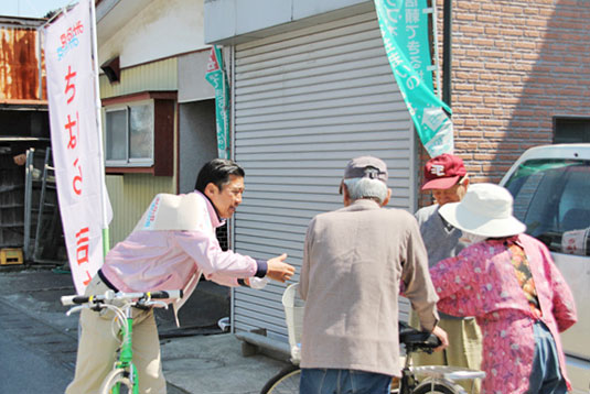 見知らぬ有権者の皆様へ手を振る事に最初は、戸惑いもありました。 -